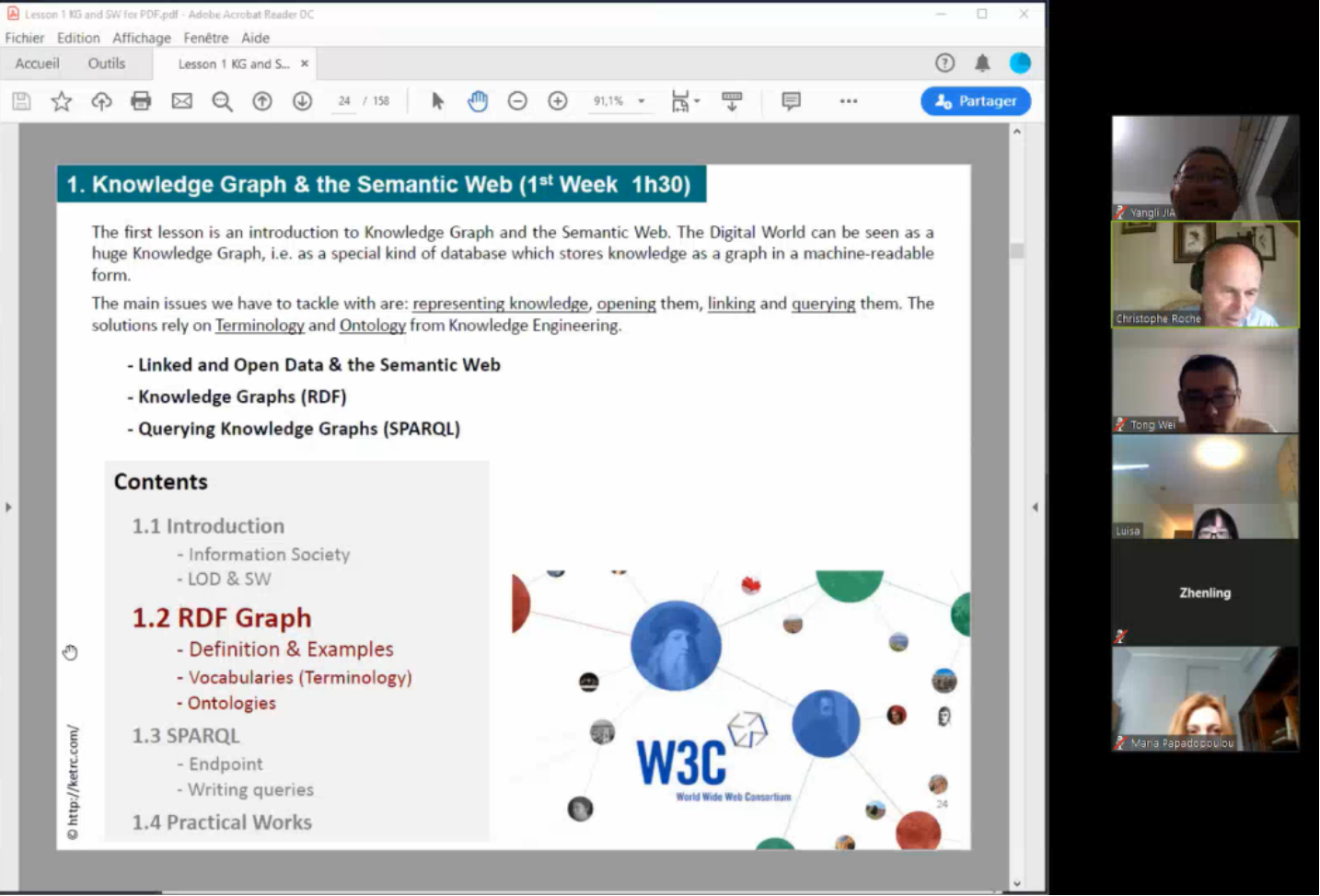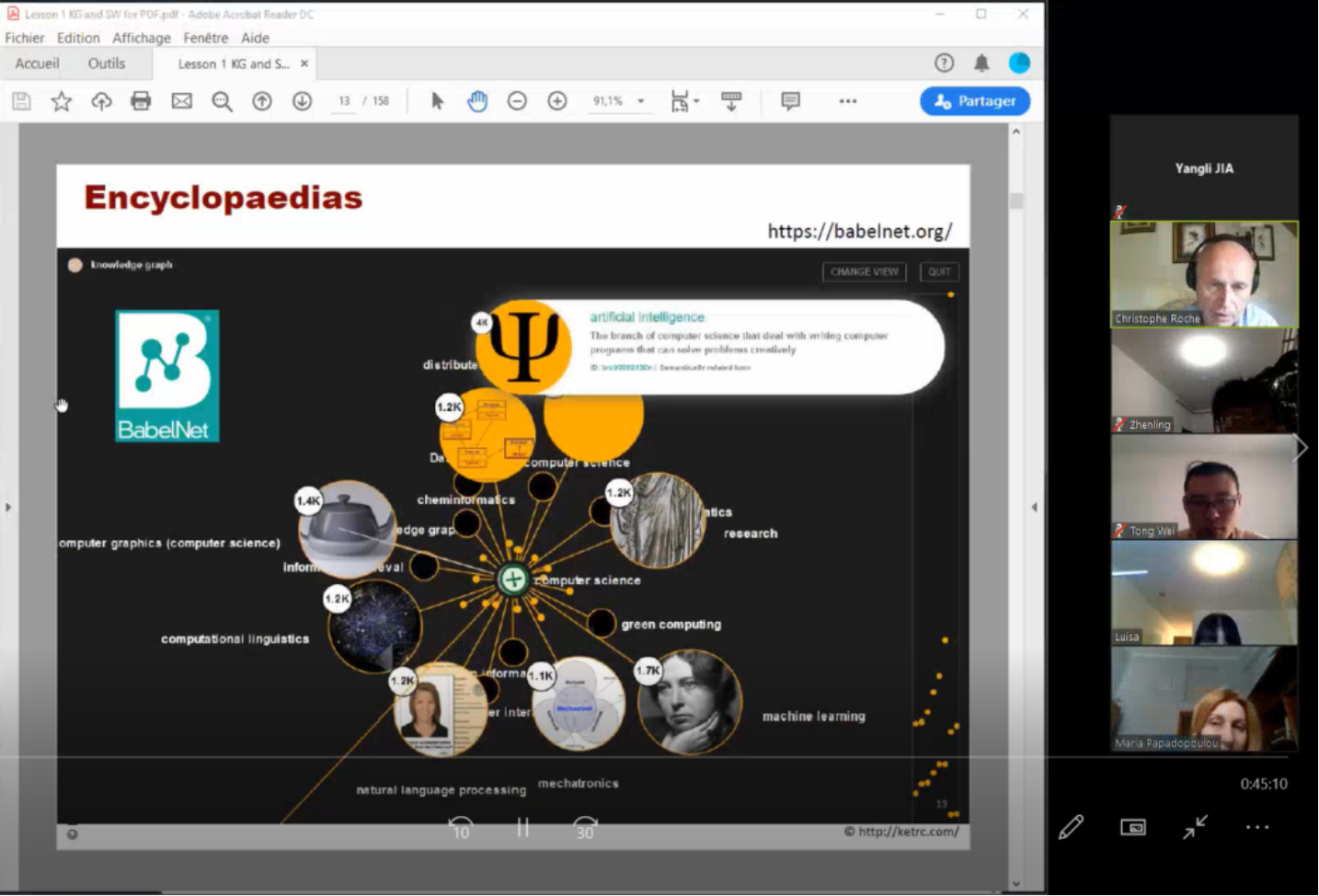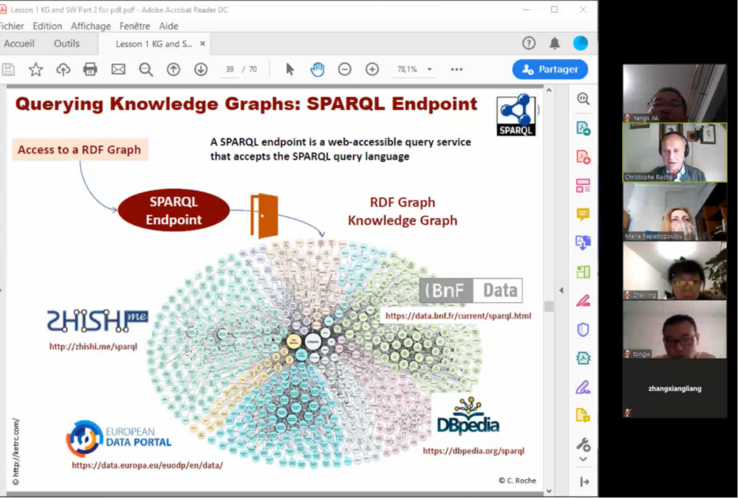 为落实学校党委关于做好疫情防控期间“停课不停教、停课不停学、停课不停研”的部署,4月23日至6月11日,英国365集团利用Zoom会议系统开展了6场线上学术报告和国际交流活动。 线上系列学术报告与交流围绕“数字人文时代的本体与术语学”展开,包括了“Knowledge Graph & the Semantic Web”、“Terminology”、“Ontology”、“Digital Humanities”、“Smart City”五个专题,由我校外知识工程与术语学中法联合研究中心主任Christophe Roche教授主讲。希腊学者Maria Papadoupulou教授、中国人民大学安小米教授、山东省标准化研究院高永超研究员、维也纳大学刘翚博士,以及多位ISO TC37委员会国际标准制定专家、 IEC智慧城市国际标准制定专家、我校知识工程与术语学中法联合研究中心成员、英国365集团部分教师与研究生等30余人参与了这一系列交流活动。 通过此次线上学术交流活动,与会专家对知识图谱、语义Web、计算术语学、数字人文和智慧城市标准等内容进行了深入交流,达成了下一步合作意向。同时,本系列活动的成功开展也拓宽了学术研究讨论的渠道,丰富了学术活动与国际交流的形式,开阔了师生学术视野。