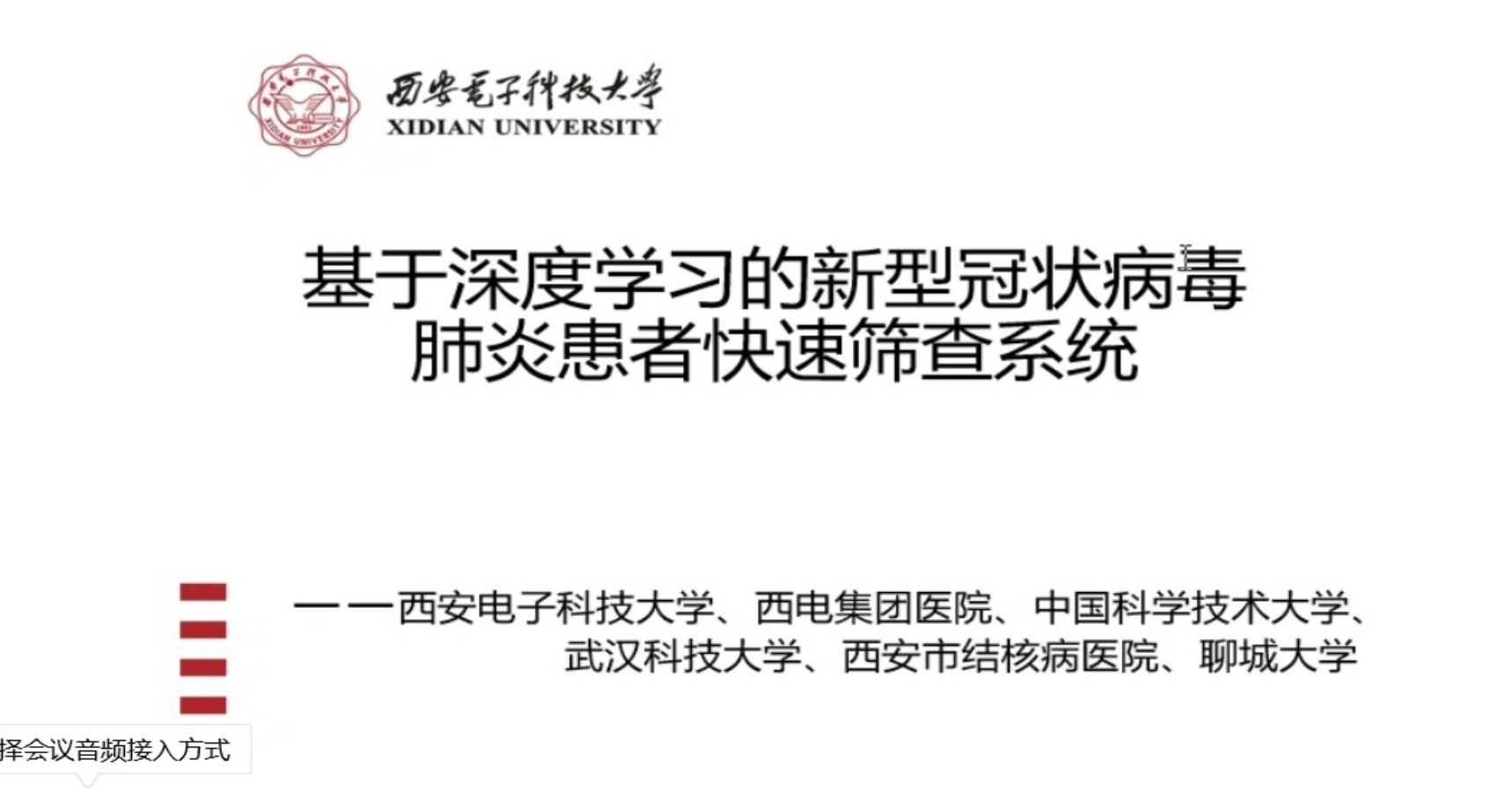 窗体底端在横向课题方面,实验室积极与西电集团医院、武汉科技大学等展开合作,参与完成基于深度学习的新型冠状病毒肺炎患者快速筛查系统。