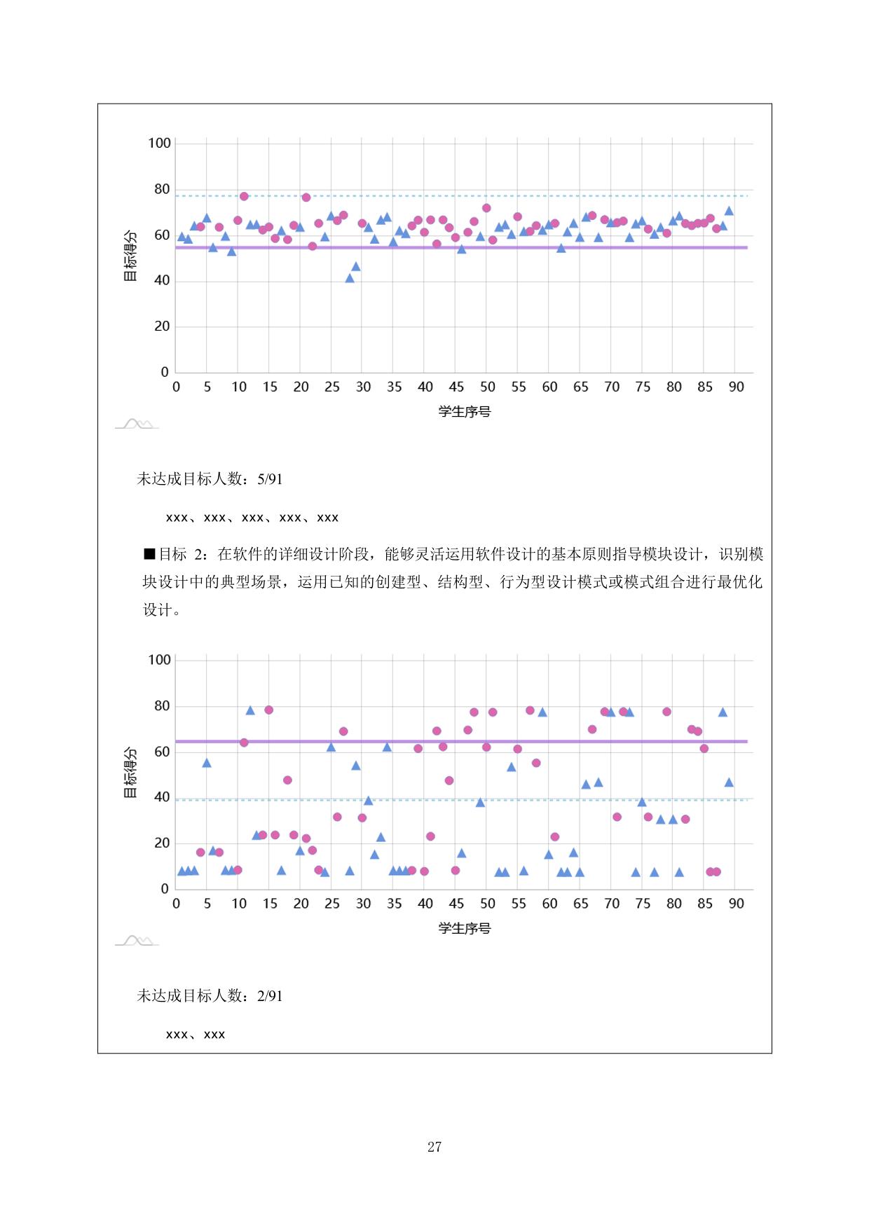 专业不设统一的课程目标达成标准,由课程负责人根据课程目标性质、试题难度、改进措施落实情况等因素,综合确定本年度本课程下各课程目标的达成标准(即期望值)。