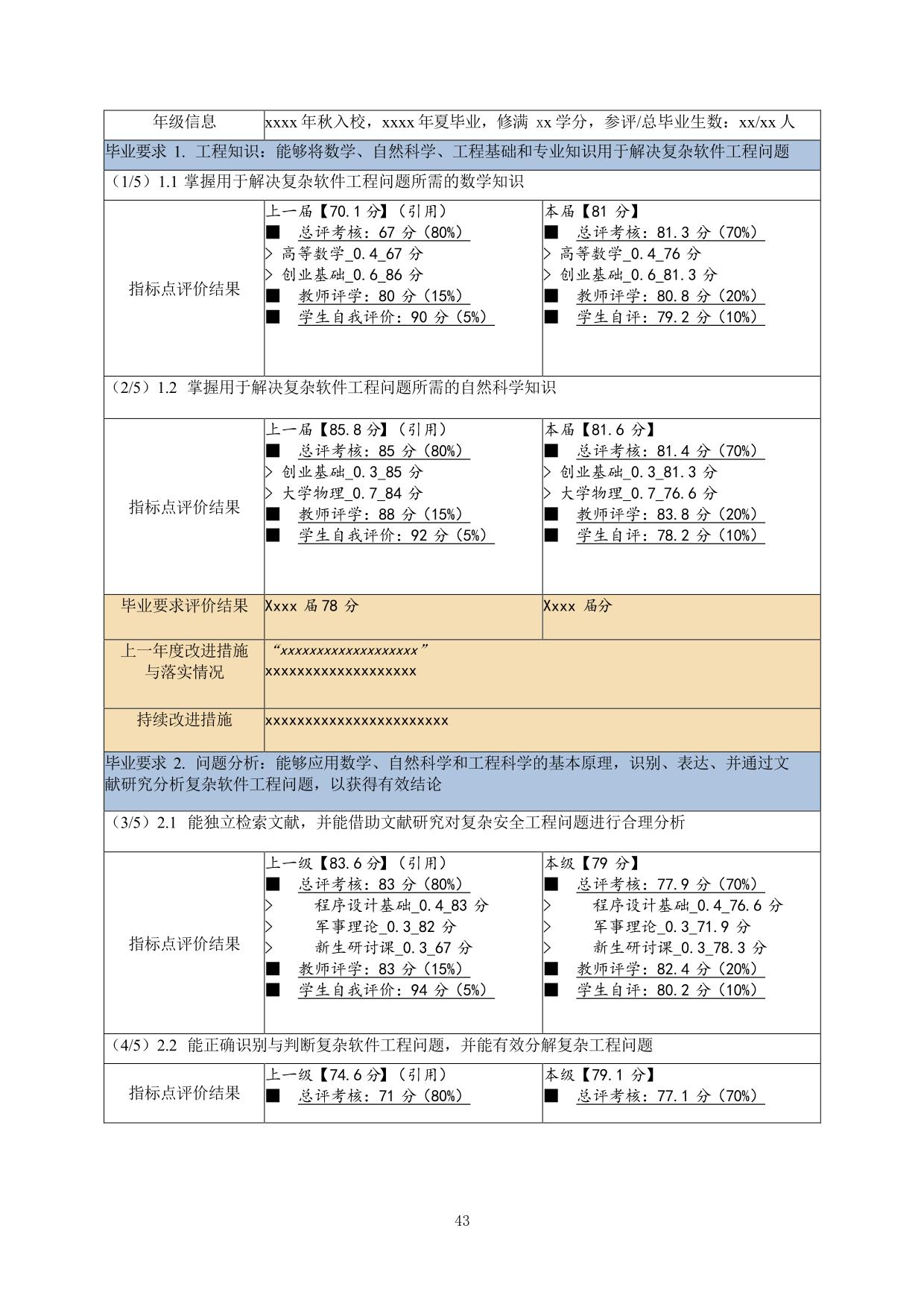 结合本年度评价结果,专业负责人起草本年度持续改进措施,评价工作小组研讨、定稿,形成一份《毕业要求评价报告》。