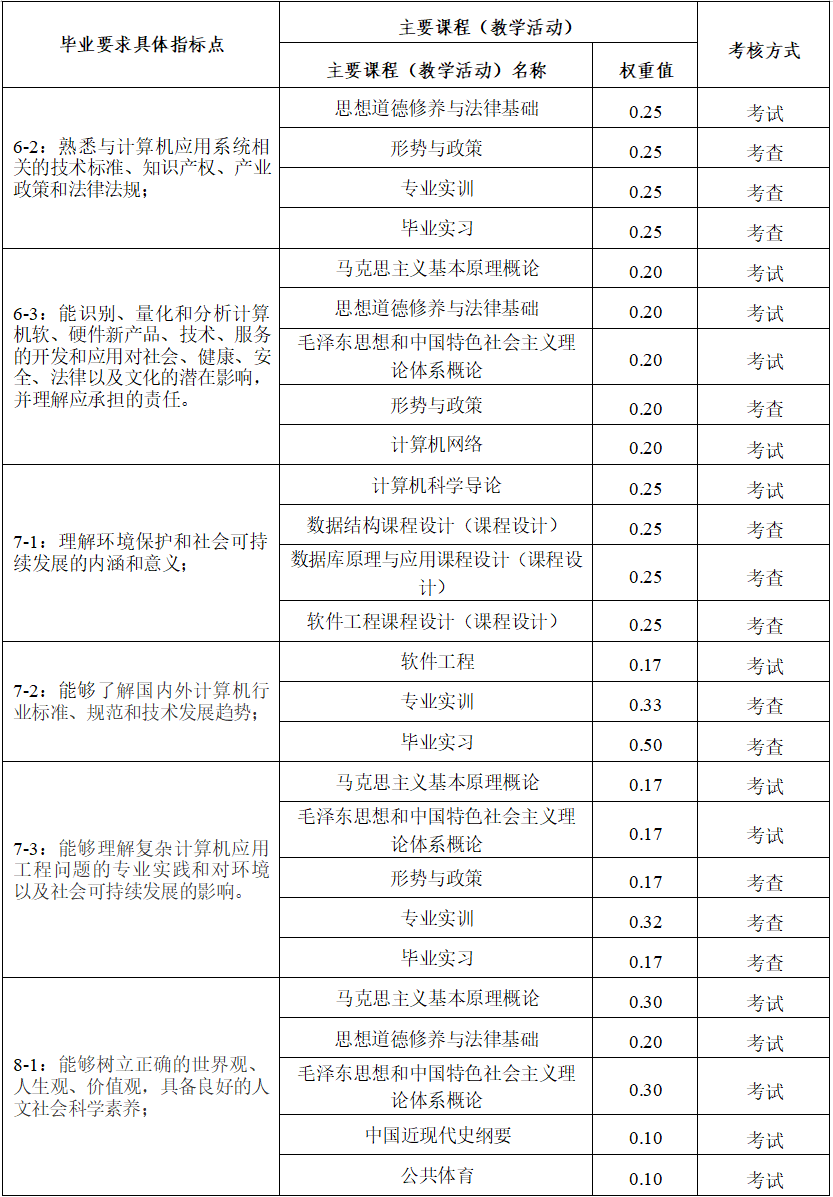 六、主要课程(教学活动)与毕业要求对应矩阵(见表 3)