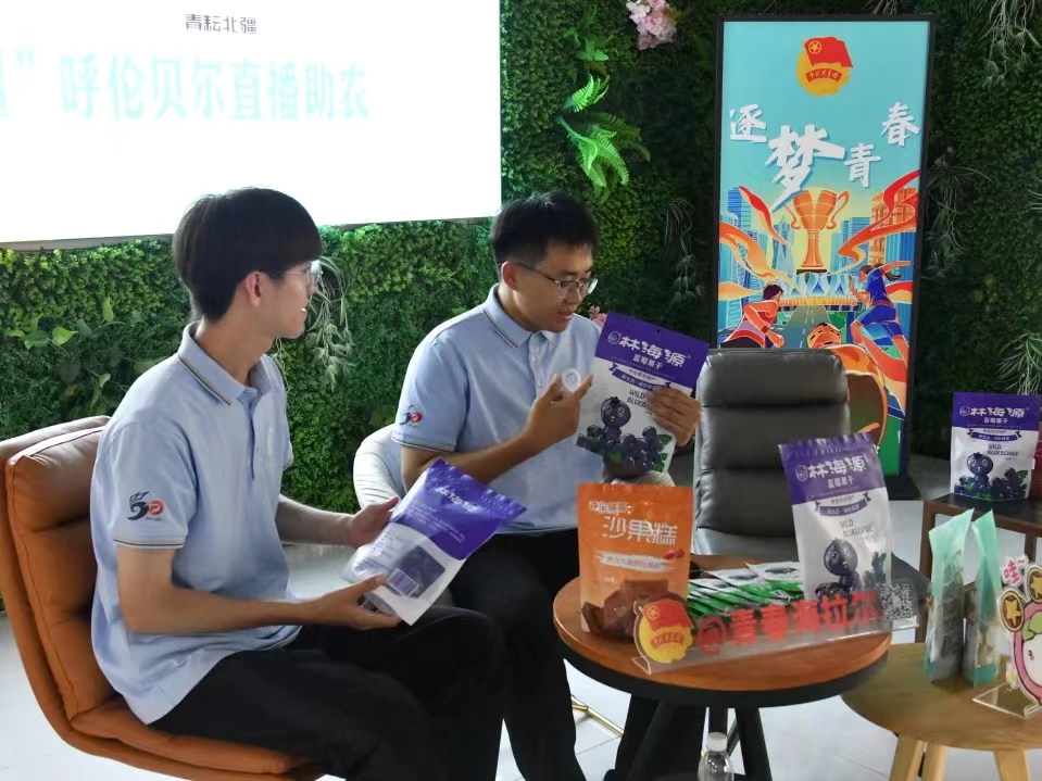 院地携手,促进融合新产业。在呼伦贝尔市海拉尔区电商产业园负责人的带领下,实践队员参观产业园的各个展区和工作单位,深入了解物产体验中心、智慧云仓、跨境电商服务中心、创客直播基地、党员活动室等特色活动区域,认识整个产业园的结构和运营流程。实践队员走进特色手工产品工作室,与品牌负责人进行交流沟通,咨询特色产品的销售状况和运营方法,掌握直播和控流的技巧。理论结合实践,直播赋能发展。实践队员在创客直播基地现场进行直播带货的新体验,利用基地的现有设备和特色产品,实践队员以专业主播的姿态,严格把控直播要求,灵活运用所学的直播知识与技巧,向直播间内的广大网友细致入微地介绍特色产品,赢得了众多网友的关注与支持。