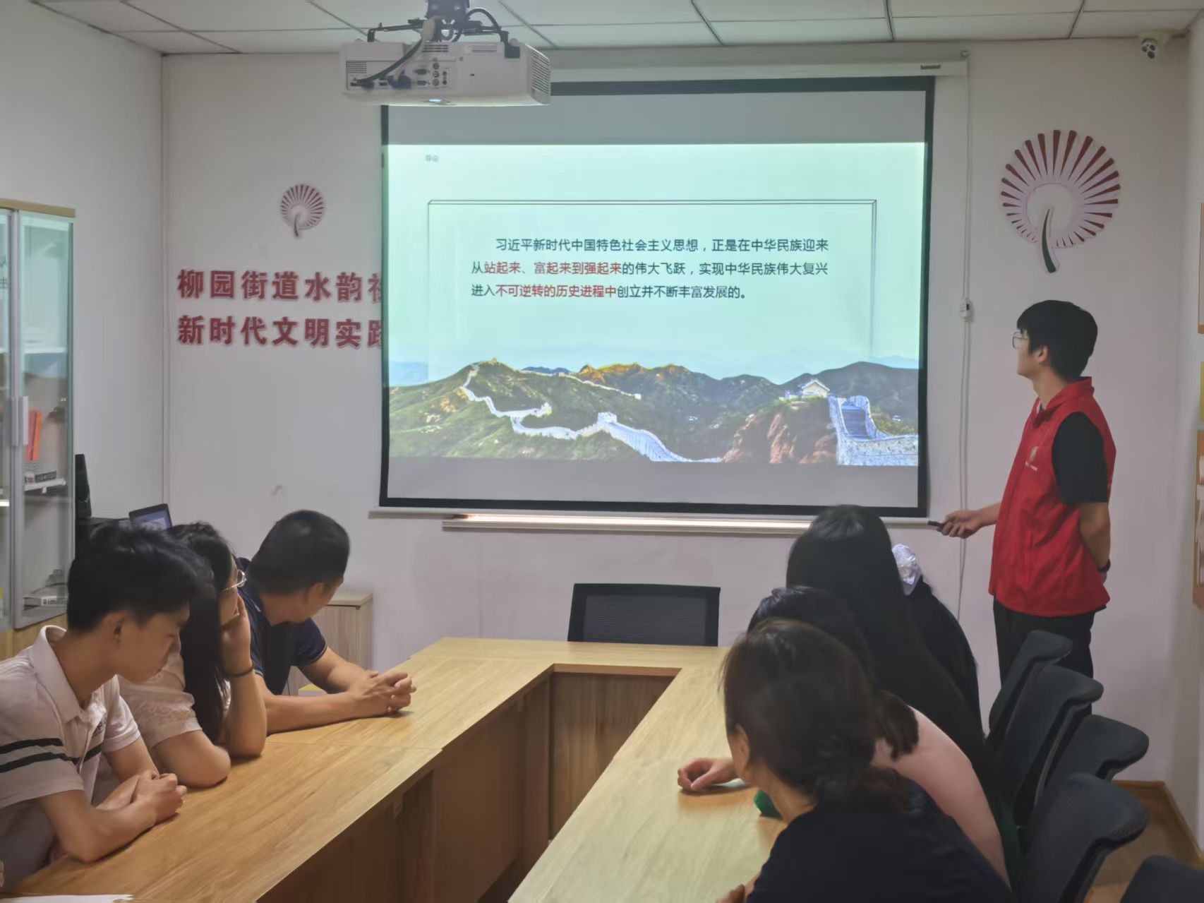 6月25日上午,宣讲团成员提前抵达水韵社区党群服务中心,为迎接社区党员和青年做准备。活动伊始,宣讲团成员以生动的语言、详实的案例,围绕习近平新时代中国特色社会主义思想的核心要义、精神实质、丰富内涵和实践要求展开主题宣讲。他们从生活点滴出发,运用通俗易懂的语言、鲜活真实的案例,深入浅出地阐述习近平新时代中国特色社会主义思想要点,讲述脱贫攻坚、生态建设成果,拉近理论与生活的距离。当讲到乡村振兴战略时,宣讲团成员不仅分享了周边乡村产业发展、村民生活改善的实例,还结合自身在乡村调研的所见所闻,分享了乡村面貌发生的巨大变化,让大家直观地认识到这一战略的重大意义。现场的党员及青年们纷纷表示,通过这次宣讲,对党的创新理论有了更深入地理解,也更加明白了国家发展战略与自己生活的紧密联系。