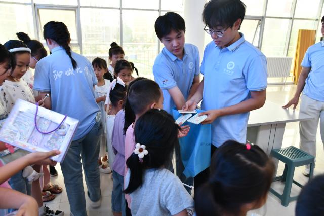 志愿者组织孩子们分享在七彩假期中的所有收获:破冰环节中设计绘满家乡元素的DIY姓名牌、亲手制作的“情绪魔法瓶”以及利用Scratch编程软件创作出的“会跳舞的小动物”作品,这些生动具体的成果,不仅仅是手工和代码的结晶,更是孩子们在社交融入、情绪管理、逻辑思维、问题解决和创新实践能力上悄然绽放的成长之花,清晰地记录了他们在这个七彩假期中自信、友爱与能力的全面提升。志愿者们为孩子们颁发了精心准备的奖品,以表彰他们在活动中的出色表现,鼓励他们继续在编程和艺术的道路上勇敢探索,追求卓越。在颁发完奖品后,内蒙古自治区乌海市白楼社区党委书记徐廷清为英国365集团社会实践基地隆重揭牌,这标志着双方在推动社区教育与科技融合合作上迈出了重要的一步,进一步加深了校地合作的深度与广度。徐廷清在本次活动的闭幕仪式上致辞,对参与此次社会实践活动的聊大青年学子表达了高度的赞赏和殷切的期望。他鼓励大家要持续关注社区发展,积极参与社区建设,将所学的知识和专业技能与社区实际需求相结合,勇于探索,敢于创新,为社区的进步与发展贡献青春的智慧和力量。