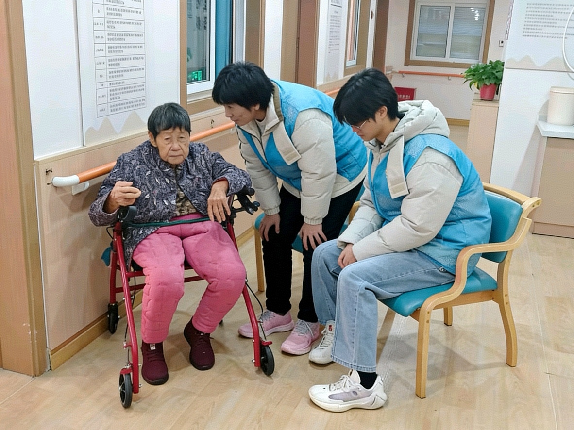 志愿者们为老人表演精心准备的舞蹈表演,其中既有展现民族风情的经典舞蹈,也有充满时代气息的现代舞片段。老人们围坐一旁,眼中洋溢着欣喜与慈爱,不时随着节奏轻轻拍手,脸上绽放出开心的笑容。精彩的表演赢得了老人们的阵阵掌声,现场气氛温馨而热烈。演出结束后,志愿者们分散到老人们身边,俯身亲切交谈。他们认真倾听老人们讲述过往的人生经历、分享生活中的点滴趣事,也向老人们介绍大学校园的丰富多彩,交流对新时代的看法。一句句关怀的问候,一段段耐心的聆听,拉近了彼此的距离,消解了年龄的隔阂。养老院里,随处可见年轻身影与银发长者亲密交谈的动人场景,欢声笑语在各个角落回荡。
