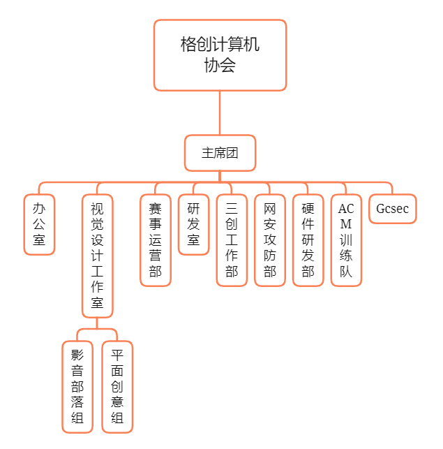 格创计算机协会包括技术部门、管理中心、三创活动中心及视觉设计工作室。