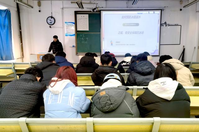 会议伊始,于庆生从头盔的保护原理和作用为切入点,强调了校园骑行戴安全头盔的重要性,并用一个个触目惊心的校园骑行事故案例,引起学生对校园安全骑行的重视,增强同学们的安全防范意识。随后,于庆生对冬季防溺水安全知识做了详尽的讲解,使同学们进一步了解冬季冰面的风险和溺水事故发生的原因,预防溺水的措施及落入冰窟的自救方法。他指出,全体学生应该做到“六个不”:不私自下水,不擅自与同学结伴入水,不在未做好充分热身的情况下游泳,不到无安全设施、无救援人员和不熟悉的水域游泳。同时,于庆生通过讲述真实的案例,使学生充分认识到滑冰溺水的危害,切实提高学生的安全意识和安全自护自救能力。