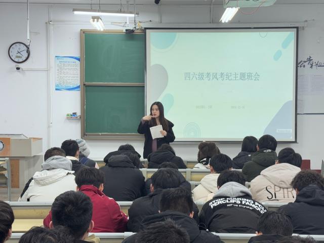 班会伊始,班主任向学生们详细介绍了四六级考试的重要性、规则和注意事项等相关事宜,并强调在国家级考试中,维护公平、公正、公开的原则至关重要,这不仅关乎每一位考生的切身利益,更是对整个社会公平正义体系的维护,以此让他们深刻认识到诚信考试的重要性,自觉抵制作弊行为,共同维护良好的考风考纪。同时,班主任还根据自身经历分享了自己的考试经验和技巧,帮助同学们熟悉考试流程、缓解考前焦虑,通过剖析四六级考试的重难点分析考试要点,希望同学们能够考前积极备考,考时沉着冷静,做到诚信应考,杜绝违纪作弊行为。班会最后,班主任提醒每位同学要携带考试相关证件和所需文具,按规定的时间到达考场,接受考试工作人员核验,并按要求在考场座位表上签名,禁止携带任何书籍、草稿纸及各种无线通信工具等违规物品。