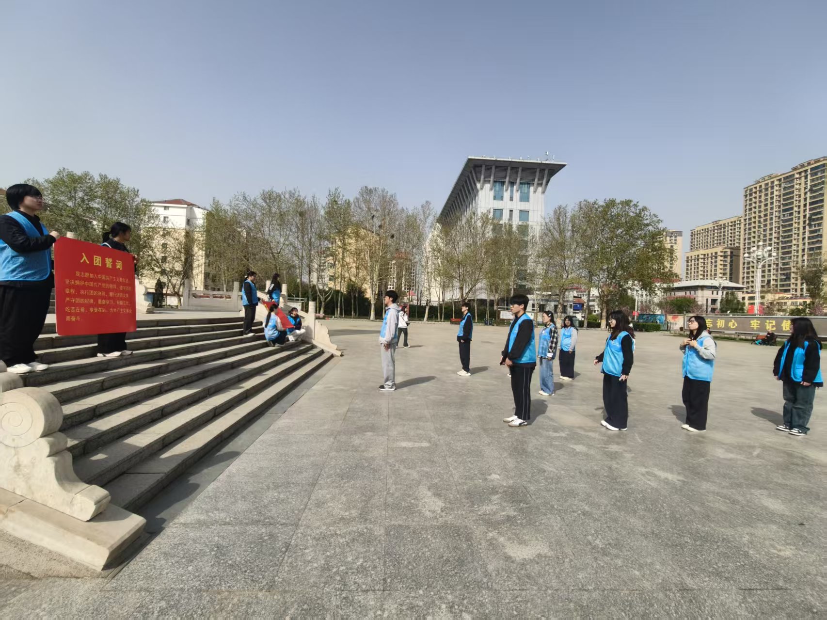 活动伊始,全体成员在工作人员引导下瞻仰烈士名录墙,认真品读革命先烈的英勇事迹。墙上的每一段文字,都无声镌刻着先烈们为家国赴汤蹈火、舍生取义的赤诚与坚守。同学们在驻足凝视中深刻感悟革命年代的烽火岁月,真切体会到今日和平生活的来之不易。随后,大家参观了重大历史事件展区,学习刘邓大军渡黄河等关键战役史实,重温波澜壮阔的革命征程,在历史回响中接受精神洗礼,爱国情怀与奋斗信念愈发坚定。参观结束后,全体团员肃立于革命烈士纪念碑前,面向鲜红团旗高举右拳庄严宣誓。铿锵有力的誓言响彻广场,坚毅果敢的神情尽显新时代青年的责任担当。活动尾声,同学们纷纷表示,将以革命英烈为精神标杆,以团徽荣光为前行动力,以入团誓词为行为准则,把缅怀之情转化为奋进力量,以实际行动践行“请党放心,强国有我”的青春誓言。