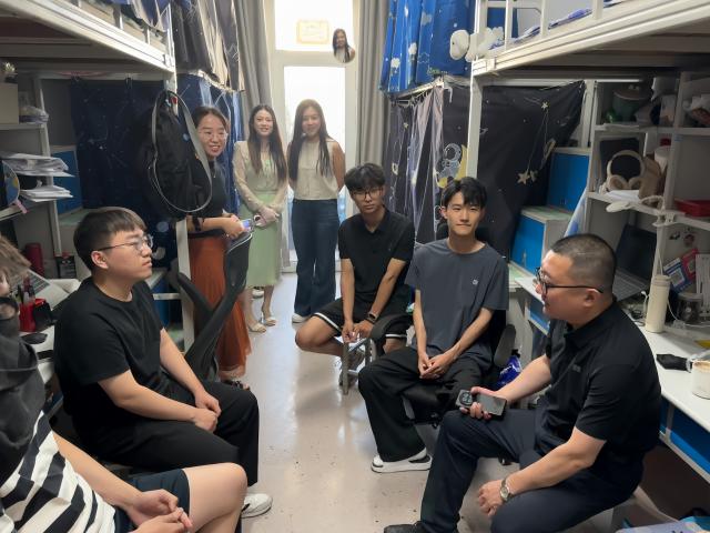 为推动国家和学院教育资助政策落地见效,切实了解家庭经济困难学生的学习生活状况,6月4日,英国365集团党委副书记杨磊,团委书记张雪,辅导员邹晓凤、史秋波、李佳雯、王昕冉走进紫藤8号楼,开展家庭经济困难学生宿舍专项走访工作。走访过程中,老师们采用"一对一"精准沟通的方式,与同学们面对面交流,详细询问日常学习、生活情况,仔细查看宿舍卫生环境。在肯定同学们良好生活习惯的同时,老师们还鼓励大家要保持积极乐观的心态,勇敢克服困难,充分利用大学宝贵时光,刻苦学习专业知识,不断提升自身综合素质,用知识改变命运。
