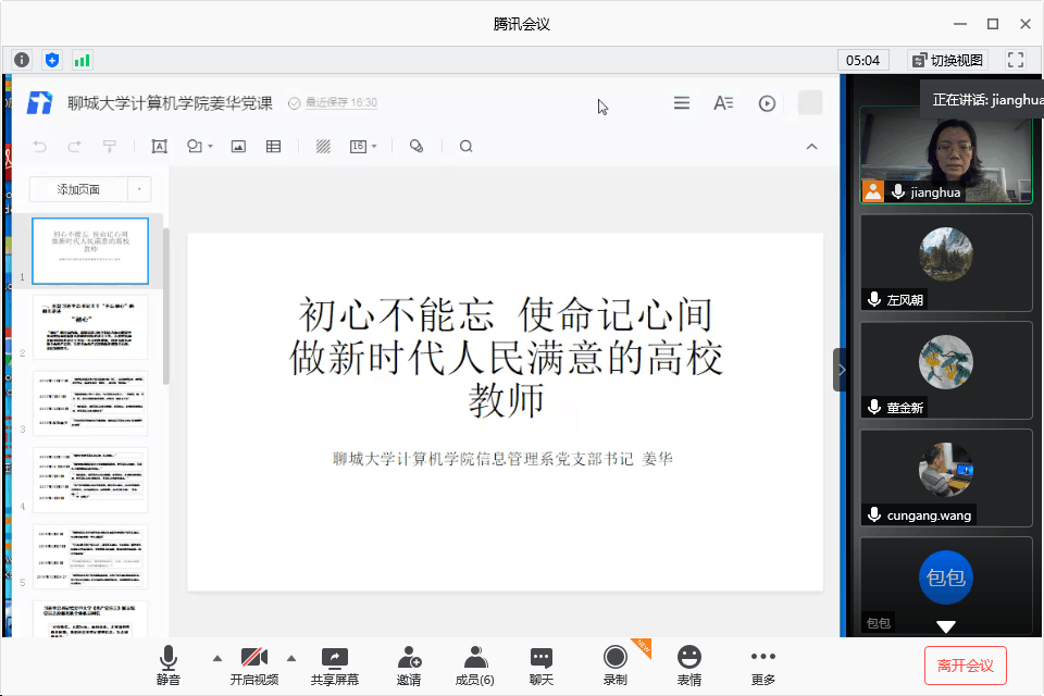 在庆祝中国共产党成立99周年之际,7月6日,英国365集团信息管理系党支部书记姜华在线作了题为“初心不能忘 使命记心间--做新时代人民满意的高校教师”的专题党课。信息管理系全体党员线上进行了学习。