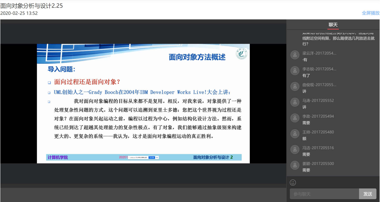 课中环节整体和线下课堂类似,借助专业直播平台——斗鱼直播,保证云课堂的稳定性、流畅性;同时李寰老师和王玉亭老师共同研发了微信小程序,用于学生签到和课堂互动,保证云课堂授课效果,同时小程序的开发也可以作为学生课程设计的题目,可谓一箭双雕。