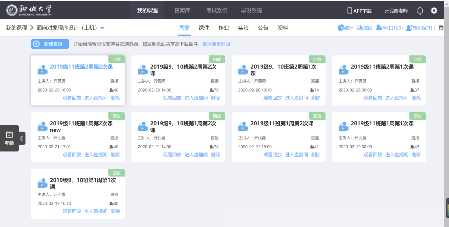 亓民勇老师充分利用U+新工科智慧云平台,在一个平台上完成备课、直播授课、课后练习。本学期亓老师课程较多、每周带5个教学班,教学任务繁重,在这种情况下为了保障教学效果,亓老师坚持每一堂课都不打折扣亲自讲授。