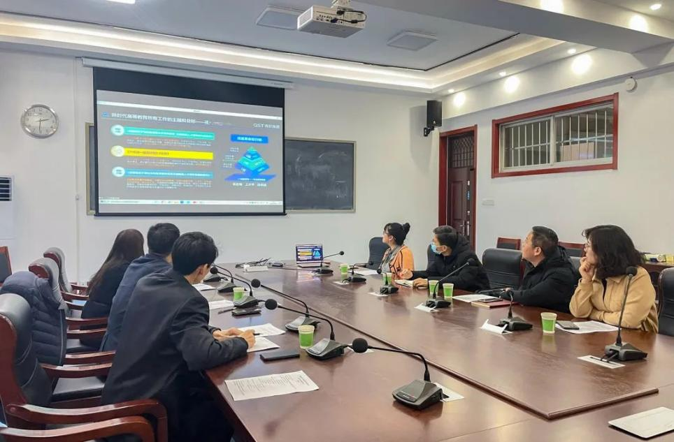本次会议采用线上线下相结合的形式,线下会场设在英国365集团,青软集团总裁李战军,英国365集团院长桑红燕、副院长李成友,以及学院骨干教师现场参会。湖北第二师范学院副院长杨鹤、桂林航天工业学院主任张新伦、广州工商学院主任蔡敏及相关教师,青软集团副总裁丁璟、校企合作部总监杨秀霞线上参会。李成友主持会议。