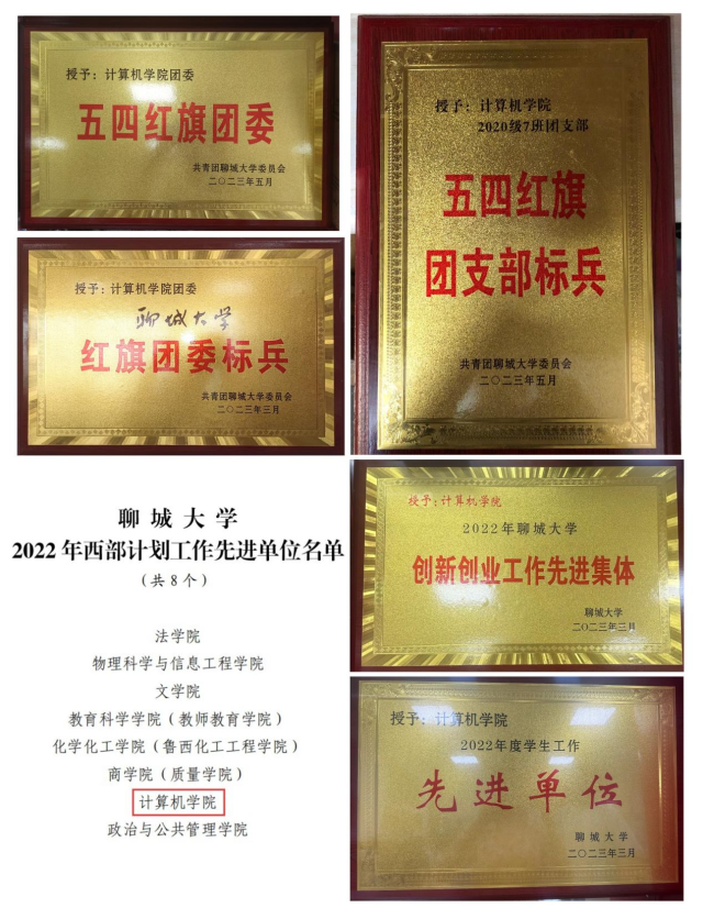 学院团委注重培养青年创新意识,锻炼创新思维,提高创新能力。一年来,我院举办了“挑战杯”院内选拔赛、第十三届蓝桥杯大赛等科技创新型比赛,积极参加“挑战杯”全国大学生课外学术科技作品竞赛、中国国际“互联网+”大学生创新创业大赛、全国大学生数学建模竞赛、中国高校计算机大赛等国家级、省级比赛,400余人次取得了较为优异的成绩,实现了学院在专业竞赛上的重大突破,其中,在第十三届蓝桥杯大赛中获得国家级二等奖2项,三等奖5项,在第九届大唐杯全国大学生移动通信5G技术大赛中获得国家级二等奖4项,三等奖2项,在第十三届“挑战杯“·建设银行山东省大学生创业计划竞赛的省赛中获得银奖1项、铜奖1项。