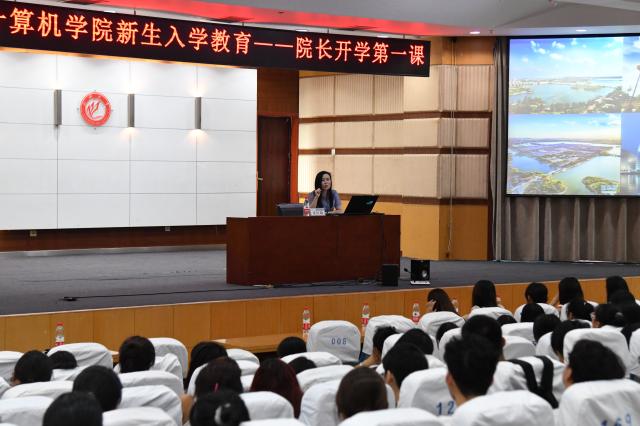 桑红燕代表学院全体师生对2024级新生们的到来表示真挚的祝贺和热烈的欢迎。桑红燕从学院的历史沿革和发展成就出发,对学院师资力量、教育教学、学科建设、专业发展、人才培养成果等进行了详细介绍。谈及职业规划和就业方向,桑红燕指出随着全球信息化、数字化等趋势的加速发展,计算机专业人才需要具备超前的眼光和意识,在脚踏实地中善思好学,不断培养创新意识,提升实践能力,才能够应对复杂多变的环境和社会需求。最后,桑红燕对新生提出四个要求:一是明确一个目标,尽快适应大学新的生活,找准努力的方向为之奋斗;二是修炼两种能力,做到内外兼修,专业能力和综合素质全面提升;三是平衡三种关系,即“破与立”的关系,尽快破除高中学习模式培养适合大学生活的思维和习惯,“远与近”的关系,既要尽快熟悉了解所学专业又要制定学习规划,“学思行”的关系,做到知行合一、思行并进;四是要努力完成“4个1”的学习目标,做到精通一种高级编程语言、参加一个校社团教学组织、参加一次学科竞赛、申请一项科研成果。桑红燕深切勉励学院全体新生,希望同学们珍惜大学四年的美好时光,既要仰望星空,胸怀远大的抱负和对个人价值的追求,又要脚踏实地,制定切实可行的学习计划并不懈努力。